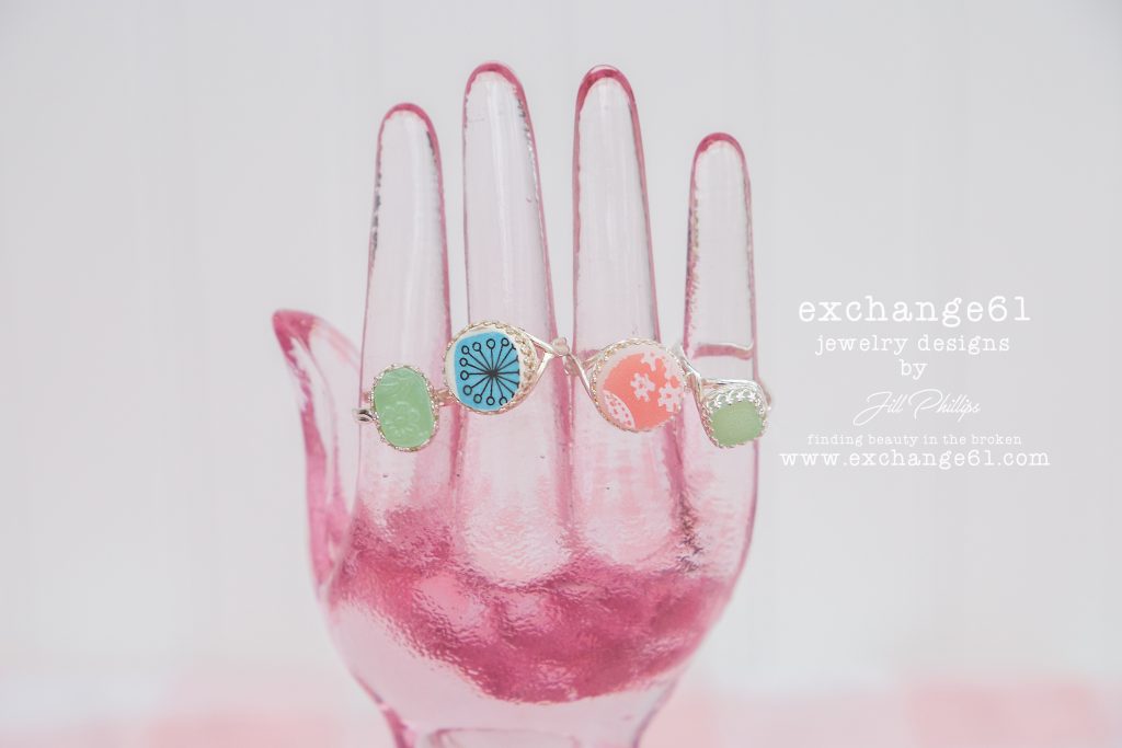 Welcome to exchange61! My name is Jill and I’m a collector of vintage Pyrex, Fire King, Hazel Atlas and Federal Glass. From this love came the concept of exchange61.com. I’ve been making portrait and hand stamped jewelry for over 8 years, and when a beautiful Pyrex turquoise Scroll Cinderella bowl broke just hours after I bought it, I decided to put my jewelry making skills to work. I thought about the concept of turning something broken into something beautiful and Isaiah 61 came to mind. It speaks of restoration and how beauty can rise from the ashes, so the name “exchange61” seemed just right, finding beauty in the broken! I create these unique items in my workshop just up the hill from historic Route 66 in Marshfield, Missouri.